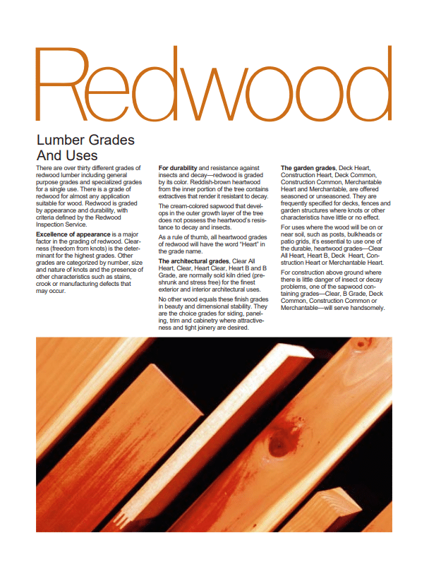 Not all redwood is the same. This guide breaks down more than 30 grades of redwood lumber, helping you choose the right grade for the right application based on appearance and durability standards set by the Redwood Inspection Service.